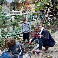 Autour de la récolte des topinambours, des dernières tomates (distribution aux cooperateurs présents),